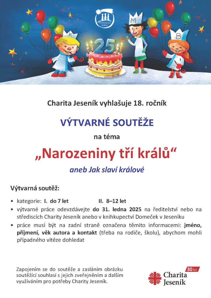 Charita Jeseník vyhlašuje 18. ročník výtvarné soutěže na téma: "NAROZENINY TŘÍ KRÁLŮ" aneb Jak slaví králové